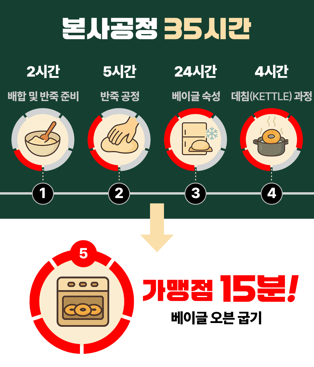 가맹점주 입장에서는 간단하게 오븐에 굽는과정만 거친다면, 당일생산한 따뜻한 베이글을 제공 가능합니다.